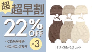 【超超早割22%OFF】くまみみ帽子・ポンポンブルマ 3色6点セット