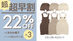 【超超早割22%OFF】くまみみ帽子・ワッフル調ロンパース 3色6点セット