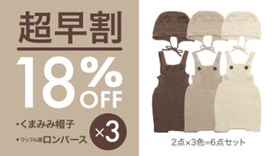 【超早割18%OFF】くまみみ帽子・ワッフル調ロンパース 3色6点セット