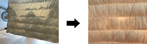 丁寧に洗浄しホコリや油分を取り除き清潔さを取り戻した羽毛は、パワーアップ加工によりふんわり感も復活。