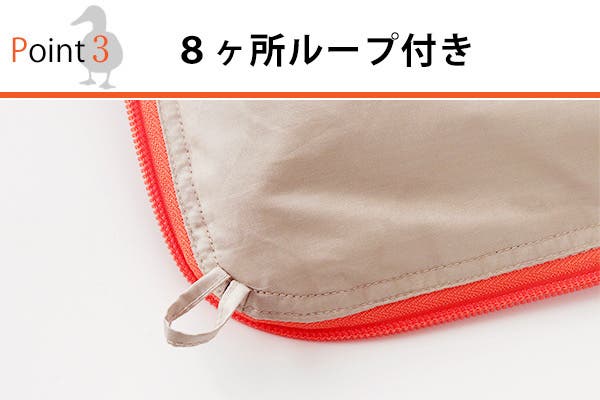 四隅を含む計8か所に掛け布団カバー用のループが付いてます。