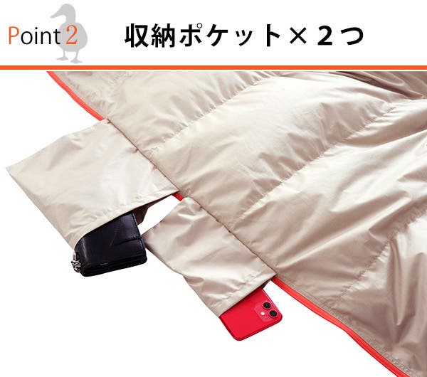 ファスナーを調節して足を開放することができるので布団に包まったまま歩くことができます。避難時の防寒用のブランケットとしてもご使用いただけます。
