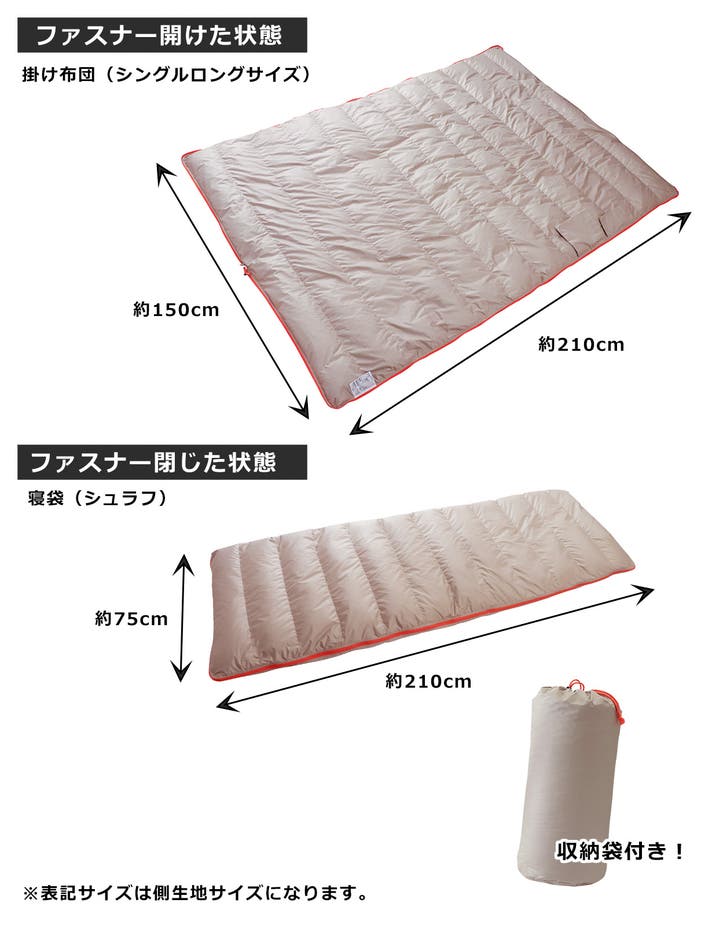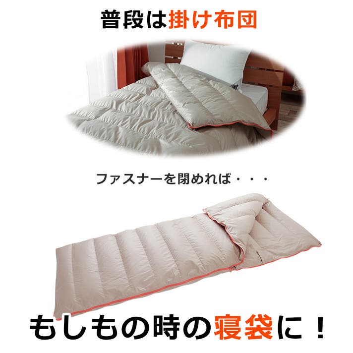 - 掛け布団が寝袋(シュラフ)に変身!アウトドア・急な非常時もいつもと同じぬくもりを