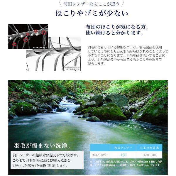 綺麗に洗浄できる秘訣は、羽毛を洗う際の「水」にあります。