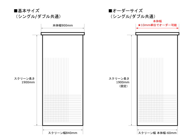 ※スクリーン幅は本体幅より左右30mm計60mm短くなります。