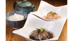 定番の白ごま鯛茶漬け、珍しい黒ごま鯛茶漬けをセットにてご用意しました。