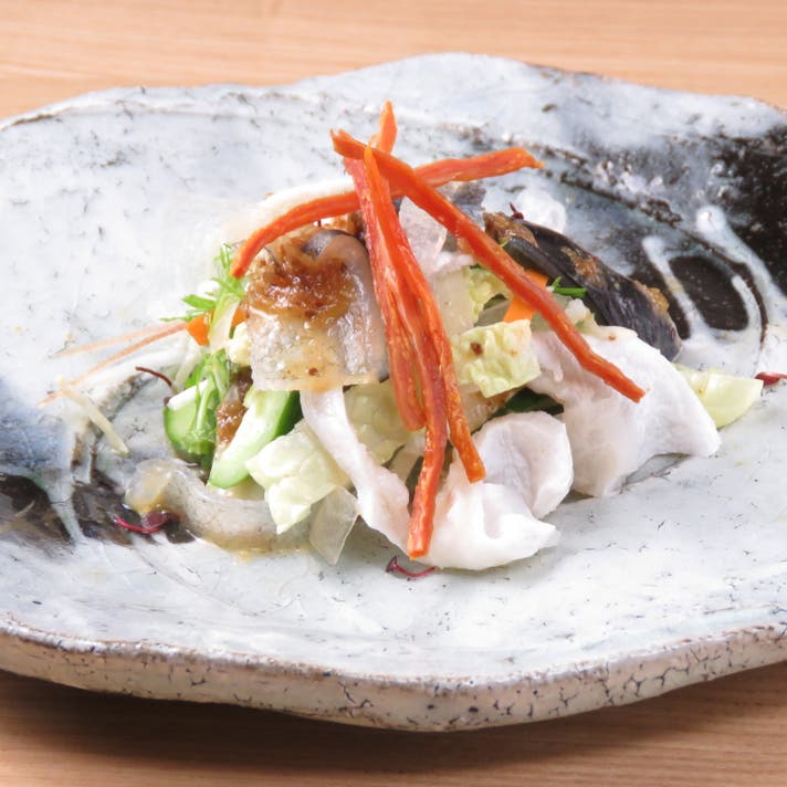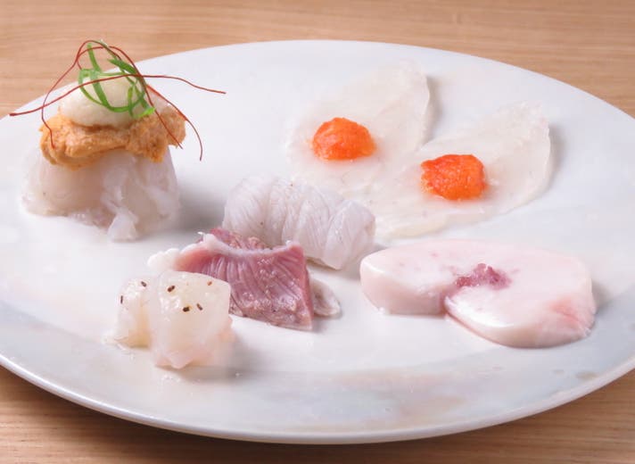 - 王道の中に、ふぐ料理の概念を覆す仕立てにしております。白子のお刺身や希少な部位を食感と共に