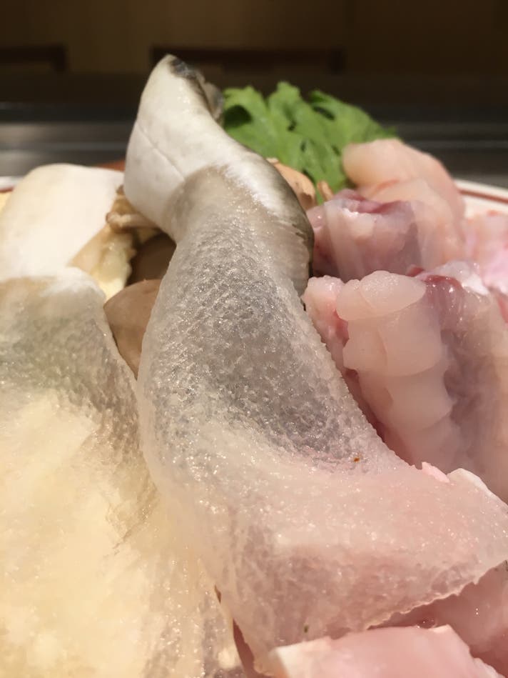 (お鍋の最初に店主自ら皮をしゃぶしゃぶ