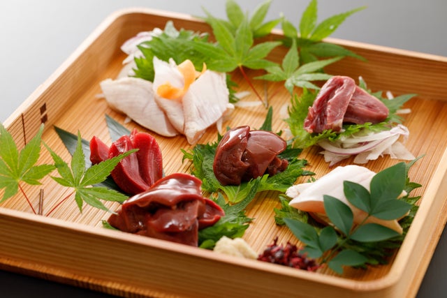 これは、ささみ、ハツ、レバーなどさまざまな部位を生の状態で召し上がっていただくもの。