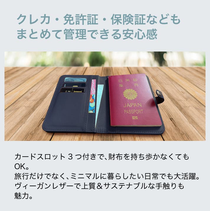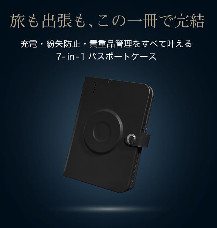 - 置くだけ充電付きのパスポートケース!空港や外出先、気づいた時に簡単充電。