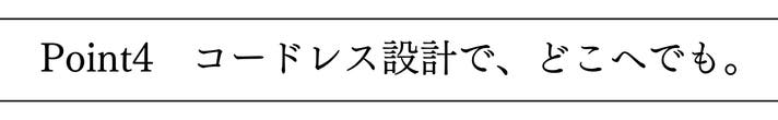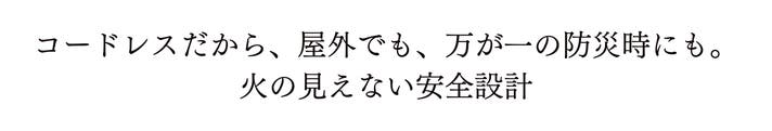 電源コードが要らないのも嬉しいポイント。コンセントの届かない食卓など屋内はもちろん、屋外など場所を選ばないポータブル設計です。