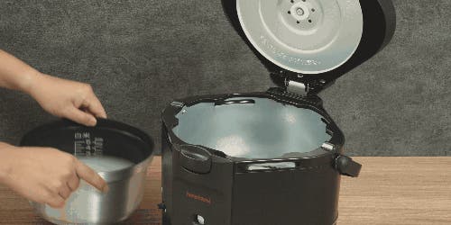 ②お米と水を入れた炊飯釜を本体にセットします。