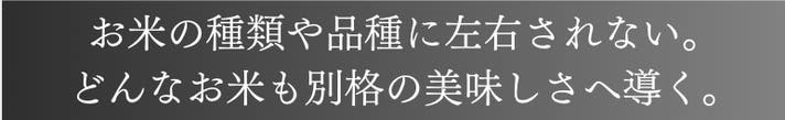安全安心を徹底追及しつつも、「電気」では辿り着けないお米本来の美味しさが、毎日手軽に、暮らしの中に。
