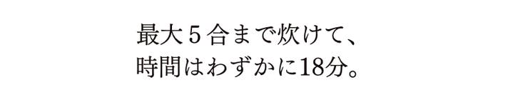 なんと1合なら炊飯時間はわずか12分。5合でも18分で炊飯できる早さ。