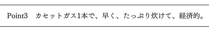 ※お米5合を炊飯するときに必要なガスの残量は、150g以上(カセットガスの容器を含む)が目安です。
