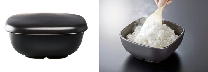 陶器は吸水性があるので、ご飯の余分な水分を適度に吸収し、粒立ったおいしいご飯にしてくれます。電子レンジで温めなおす際には、陶器に吸収されていた水分が放出されるのでふっくらとしたご飯に仕上がります。