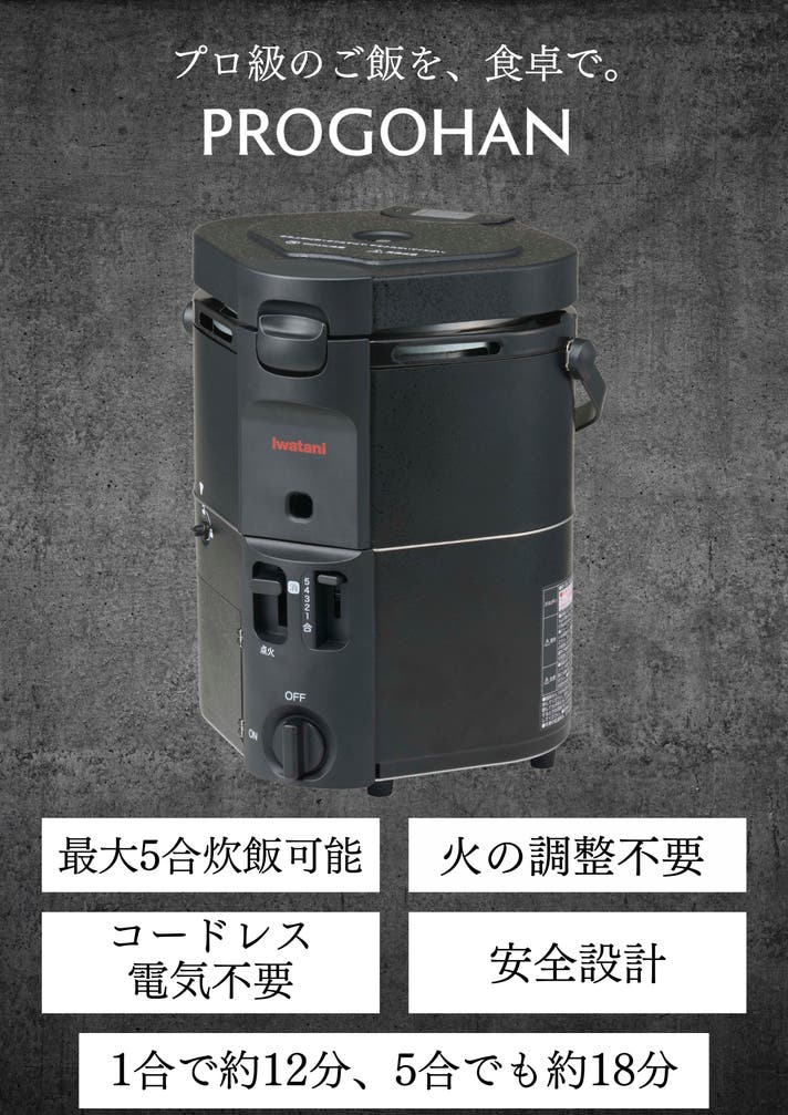 再現性高く、お米に左右されることなく、格別な白米を目指したのが、PROGOHAN。カセットガスを使用することでアプローチします。