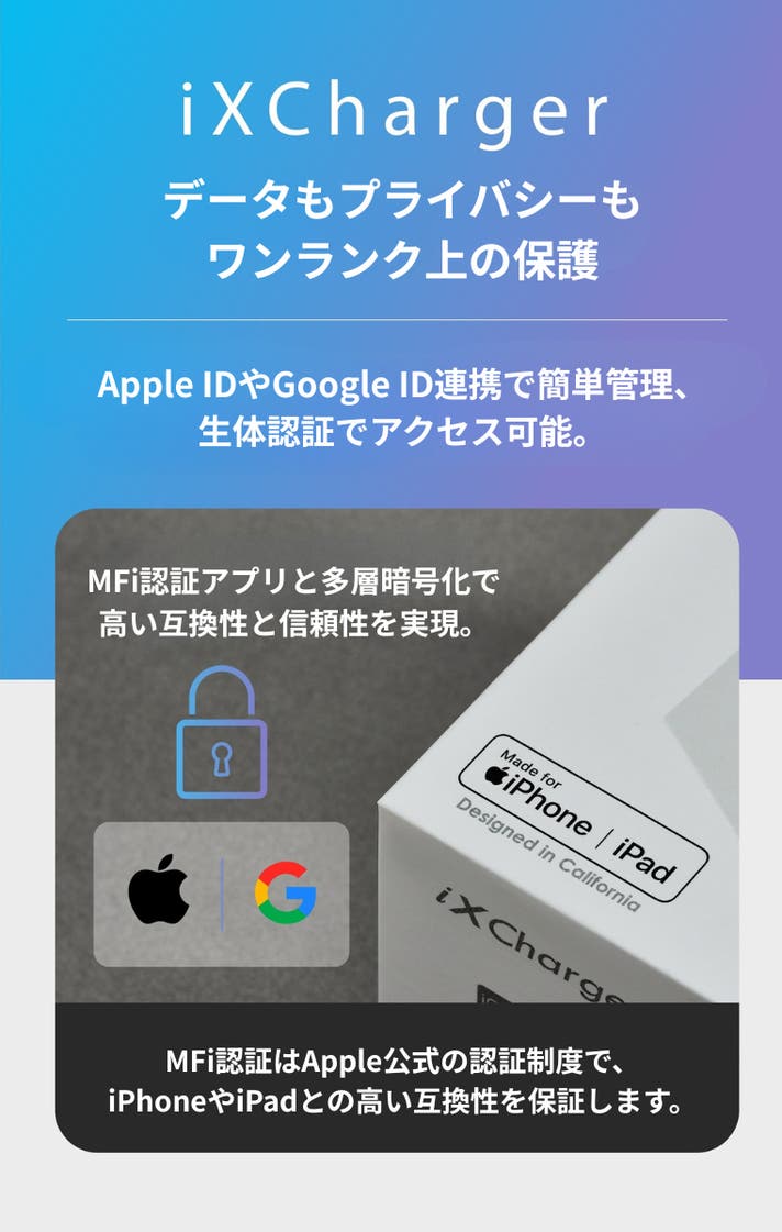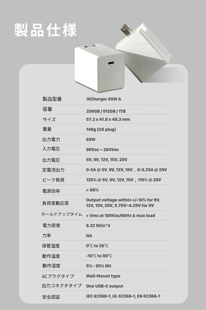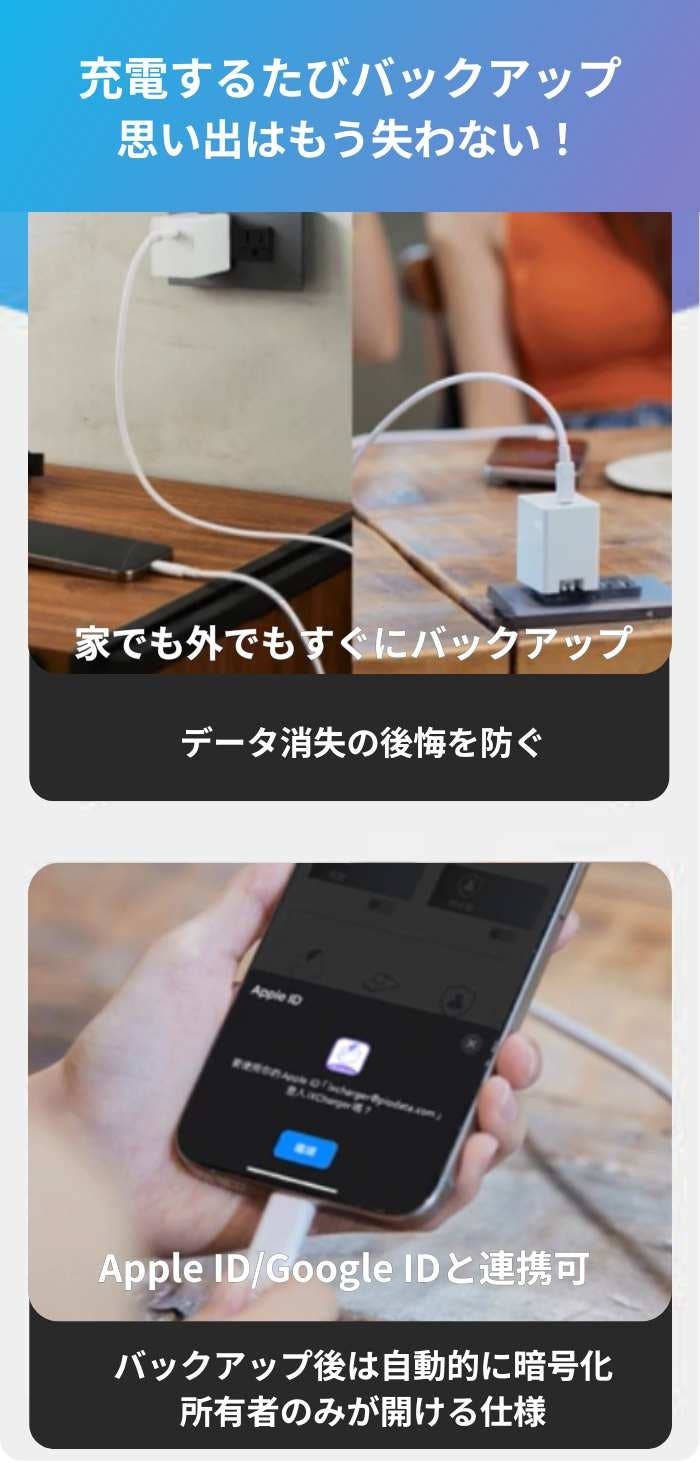 製品のご購入時からご購入頂いた後まで、常に+αの付加価値提供を追求しています。今回ご紹介する「iXCharger 65W バックアップ急速充電アダプター」は、データ管理やセキュリティへの関心が高まる現代において、充電と同時に手軽にデータ保護を実現できる画期的な製品です。日本ではまだ珍しい「充電=バックアップ」という新しい発想と先進技術を、いち早く皆様にお届けいたします。