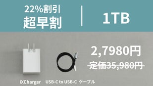 【内容】 ■「iXCharger バックアップ急速充電アダプター 1TB」 × 1 定価 35,980円 → 27,980円(税・送料込)