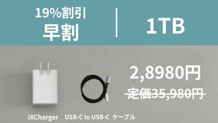 【内容】 ■「iXCharger バックアップ急速充電アダプター 1TB」 × 1 定価 35,980円 → 28,980円(税・送料込)