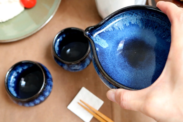 小石原焼とは、約350年に渡り、守られた伝統技術で一つ一つ手作りで作られている陶器。すべて手作りです。shuzan blueで知られる「秀山窯」に作っていただいた片口とぐい呑を作っていただきました。。「IY-O2」が水面に揺れるような錯覚に陥ります。幻想的に味わいたい方にオススメです。