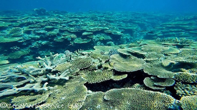 伊是名島の海は透明度がよく、30m以上の透明度があるときがほとんどで、サンゴが生き生きしています。