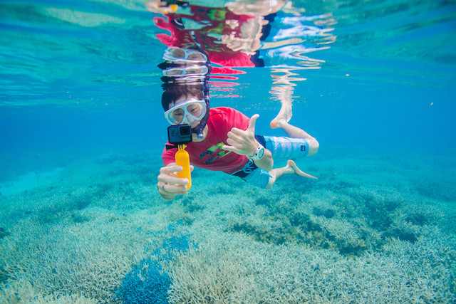 A、はい。シュノーケルはご参加可能です。ダイビングはジュニアオープンウォーターダイバーライセンスをお持ちのお子様であれば、ご参加頂けます。