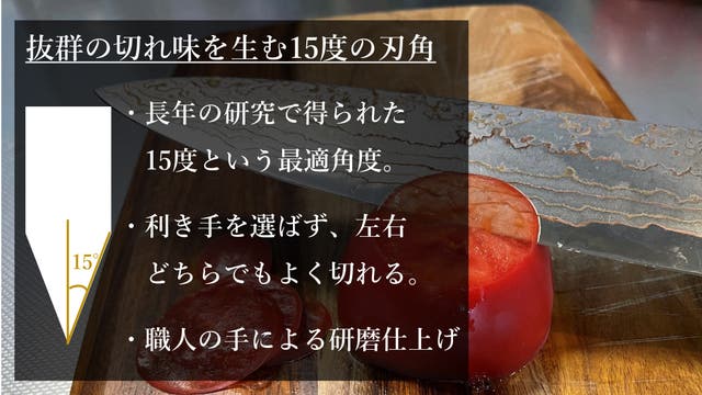 長年の研究で得られた最適角度で、職人の手仕事により丁寧に研磨して仕上げています。