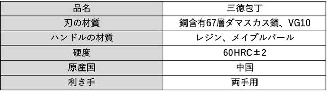 ロックウェル硬度は通常の67層ダマスカス鋼と同じ60HRC±2です。