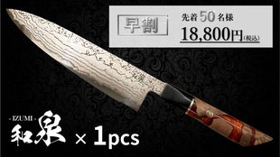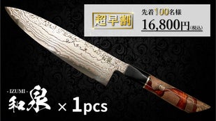 新鋭素材『銅含有ダマスカス鋼』を鍛えた美しい包丁『和泉-IZUMI-』。