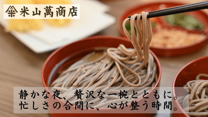 老舗の米山萬商店では、美味しい出雲そばをお客様へお届けしたいという想いから、冷凍された状態で簡単調理が可能な美味しい出雲そばを皆様へお届けしています。