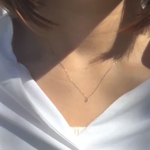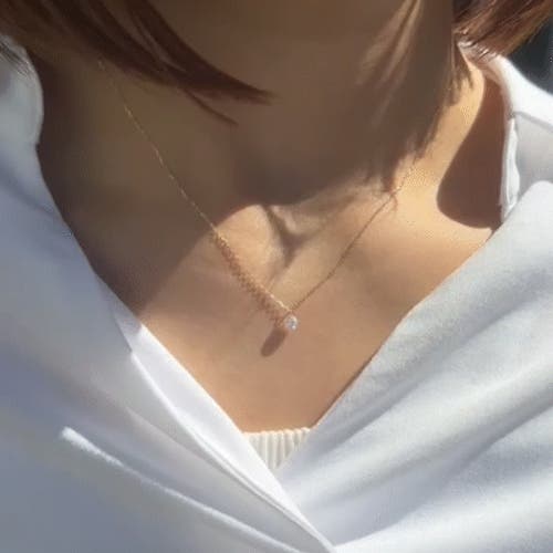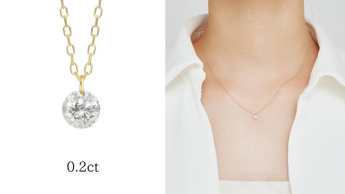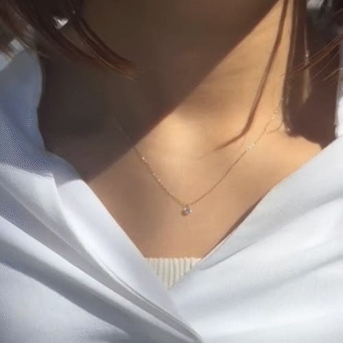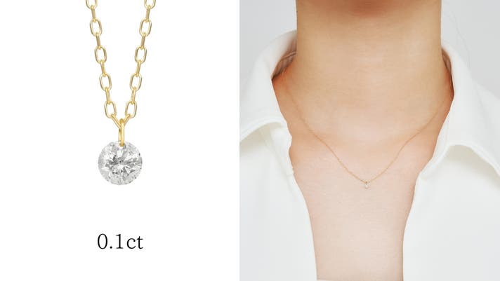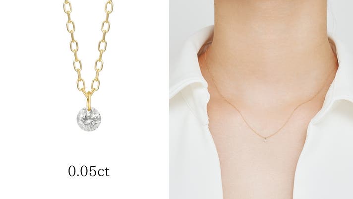胸元で自然に輝く、一粒ダイヤの定番スタイル。