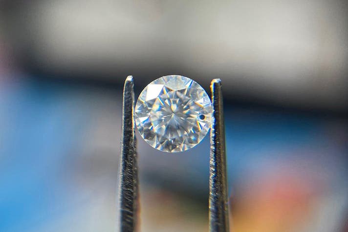 爪や台座で石を固定する従来のセッティングと異なり、レーザーホールダイヤは直径0.5mm前後の微細な穴を利用して、石そのものを直接セッティングしています。