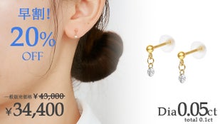 【早割20%OFF】レーザーホールダイヤ アメリカンピアス(0.1ct)