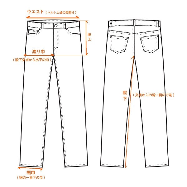 ウエスト採寸時は腰骨あたりで測ってください。(股上浅めです)