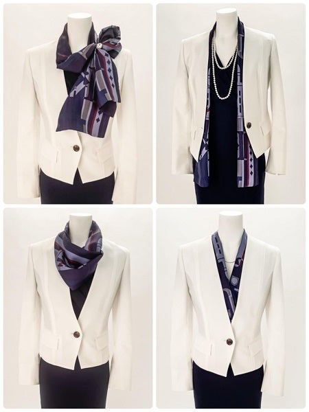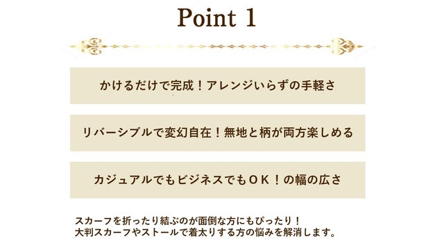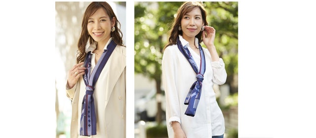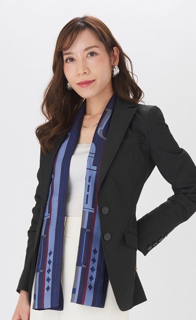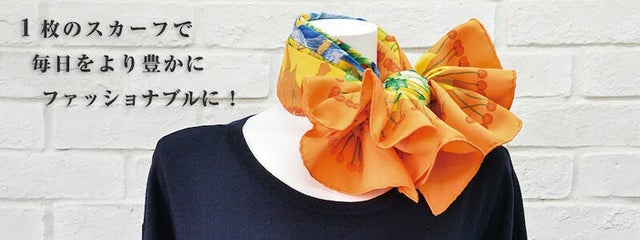 スカーフ初心者から上級者まで、取り入れやすくアレンジしやすいデザインです。