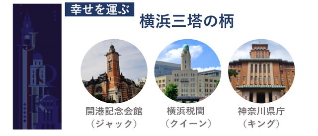 そんな横浜の街を長年見守ってきた横浜市開港記念会館、横浜税関、神奈川県庁は『横浜三塔』と言われ、昭和初期に外国船員がトランプのカードに見立てて呼んだとされる「ジャック、クイーン、キング」の愛称で親しまれています。