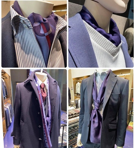 ◆派手ではない、ダークシックなスカーフの楽しみとさりげないおしゃれを提案