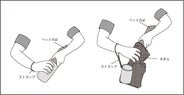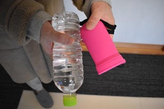 手首にストラップをかけるとカップに水が入っていてもこぼれません。洗った足は両手を使ってタオル等で拭くことが容易に出来ます。