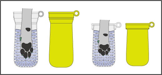 シリコン製でできているので水を入れるとワンちゃん、猫ちゃんの足をもみ洗いできます。