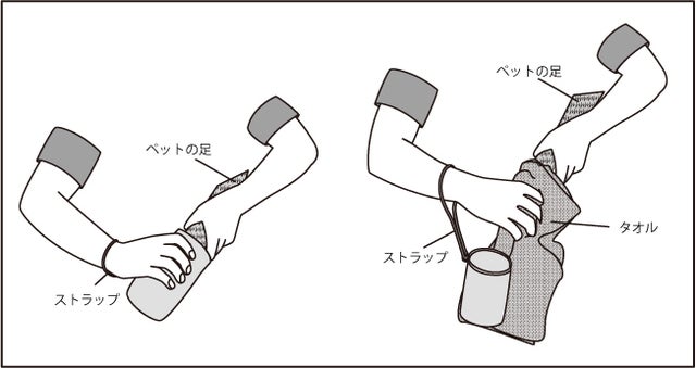 カップの中に3分の1程度の水やぬるま湯を入れます。その中にワンちゃん、または猫ちゃんなどの足を入れて握手をする様にムニュムニュと揉み洗いしてください。