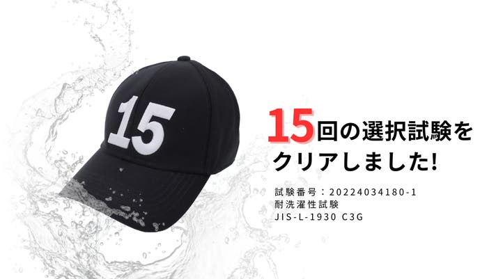 - 通常では手洗い不可だったキャップを改良し、15回の洗濯試験をクリアしました。