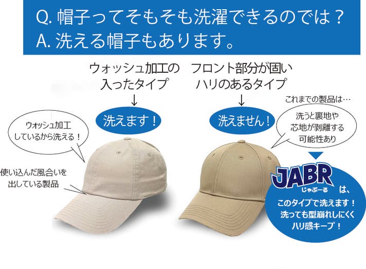 Q. 他にも洗える帽子は見かけますが、JABRとの違いは何ですか?