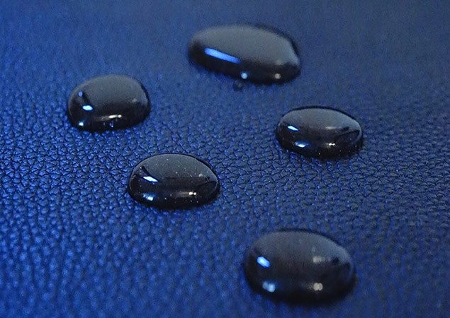 レザー表面で水を弾き、撥水性が高いため水滴となりレザーに染み込みません。