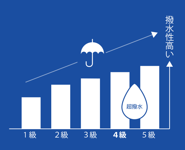 撥水度は等級が高くなるほど撥水性が高いことを示しています。傘の生地は等級3級以上と言われ、4級以上であれば十分な撥水性を保持していると言えます。