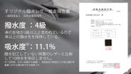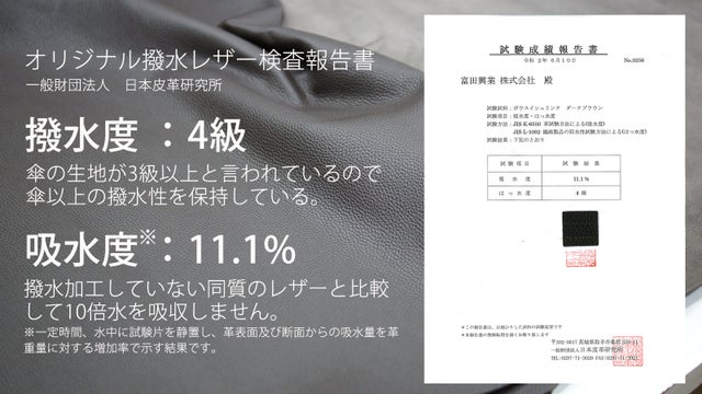 撥水加工していな同質のレザーと比較して10倍水を吸収しません。