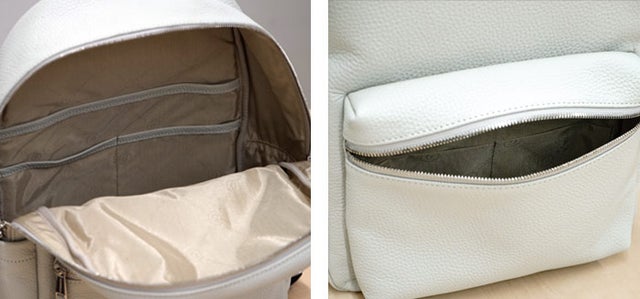 メインコンパートメントには、タブレットが入る大きめのオープンポケットとペンなど小物の収納に便利な小型のポケットが2つ。前面のファスナーポケットの中には、小型のオープンポケットが2つ。ティッシュやちょっとした収納に便利。