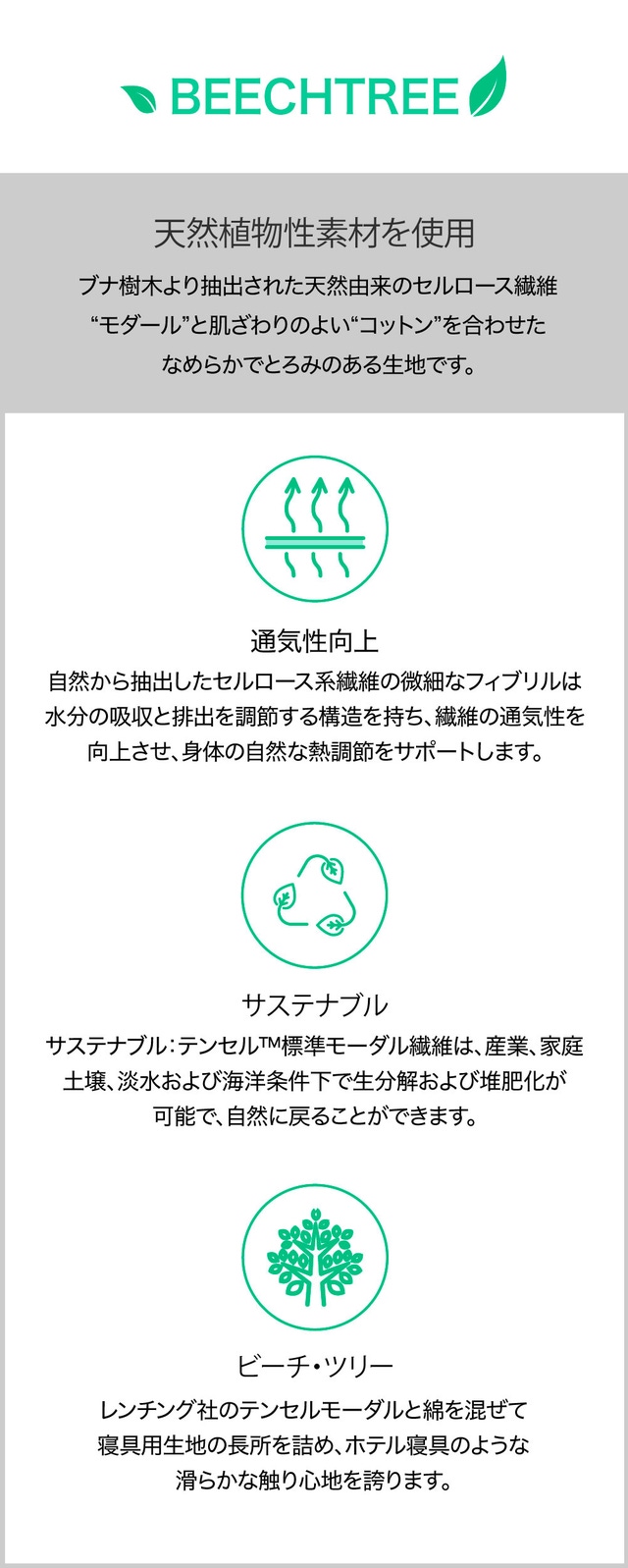BEECHTREE素材モダールカバーも追加で購入が可能です。