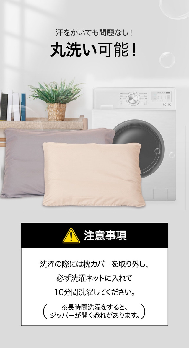 枕のモダールカバーは外して別々に洗濯してください。