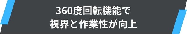 360度回転が可能な設計により、画面の共有やポジション調整が自在に行えます。